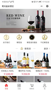 紹興葡尚皇家酒莊小程序是紹興魔方網(wǎng)絡(luò)科技有限公司2019年度開(kāi)發(fā)的微信小程序,小程序頁(yè)面設(shè)計(jì)時(shí)尚簡(jiǎn)潔,是愛(ài)品味紅酒和收藏紅酒購(gòu)買(mǎi)小程序,開(kāi)發(fā)了首頁(yè)商城、分類、購(gòu)物車(chē)、我的中心等等模塊。